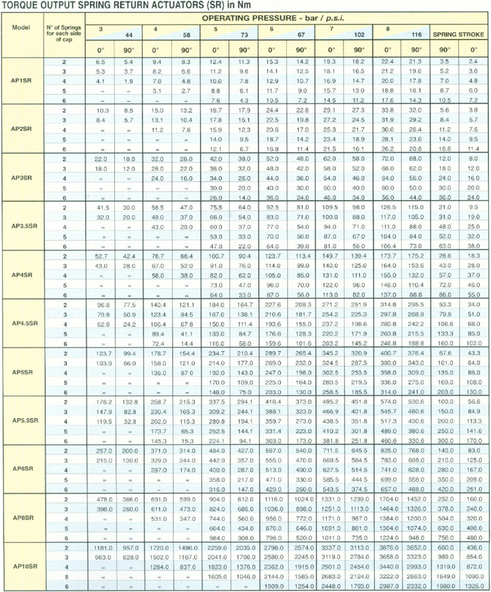 3 bar ( 44 psig ) to 8 bar ( 116 psig ) spring return