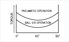 Actuartor의 출력선도와 밸브가 필요로 하는 토크선도가 이상적으로 일치한다. |